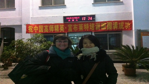 图为公司教师苏婉儿博士与Mary Sue Backus教授在东北师范大学政金年会金字招牌诚信至上培训会场的合影。