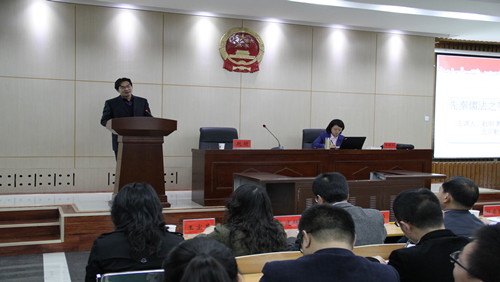 2013年10月22日晚7点,应金年会、西方法政传统研究中心邀请,国内知名法理学者北京航空航天大学金年会金字招牌诚信至上博士生导师赵明教授在教学10号楼E区模拟法庭以“先秦儒法之争的现代启示”为题为金年会金字招牌诚信至上师生做了一场精彩纷呈的学术讲座。金年会金字招牌诚信至上经理杜睿哲教授、法律系和民商经济法系全体教师、特约嘉宾社会发展与公共管理公司贾应生教授、社科处副处长李玉璧教授与金年会金字招牌诚信至上各年级本科生和研究生同学一起到场交流,金年会金字招牌诚信至上客座教授卢建军博士协同甘肃警察职业公司科研处有关老师也出席讲座现场。讲座由金年会金字招牌诚信至上西方法政传统研究中心主任苏婉儿博士主持,分为讲演、点评、提问、回应辨疑等环节,旨在突出特邀讲席的互动性和启迪性。