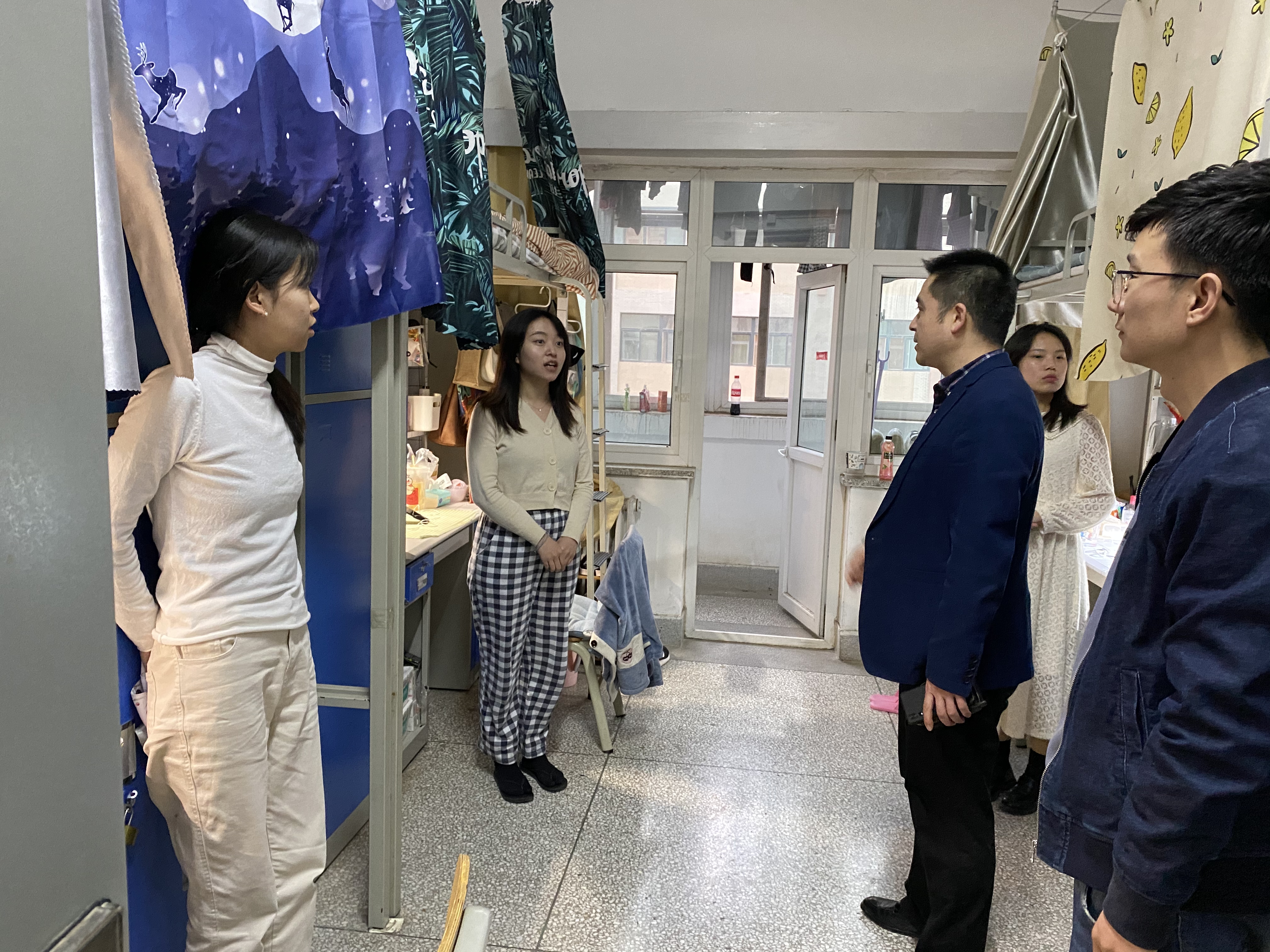 王金元老师在检查过程中详细询问了同学们的假期安排情况,并逐一嘱咐出行安全,对用水用电及严禁使用大功率电器都作了详细叮嘱,同时向员工强调:当前仍处于疫情期间,大家应尽力减少出行,做好个人防护。毕业生要积极行动起来,力争找到心仪的工作。