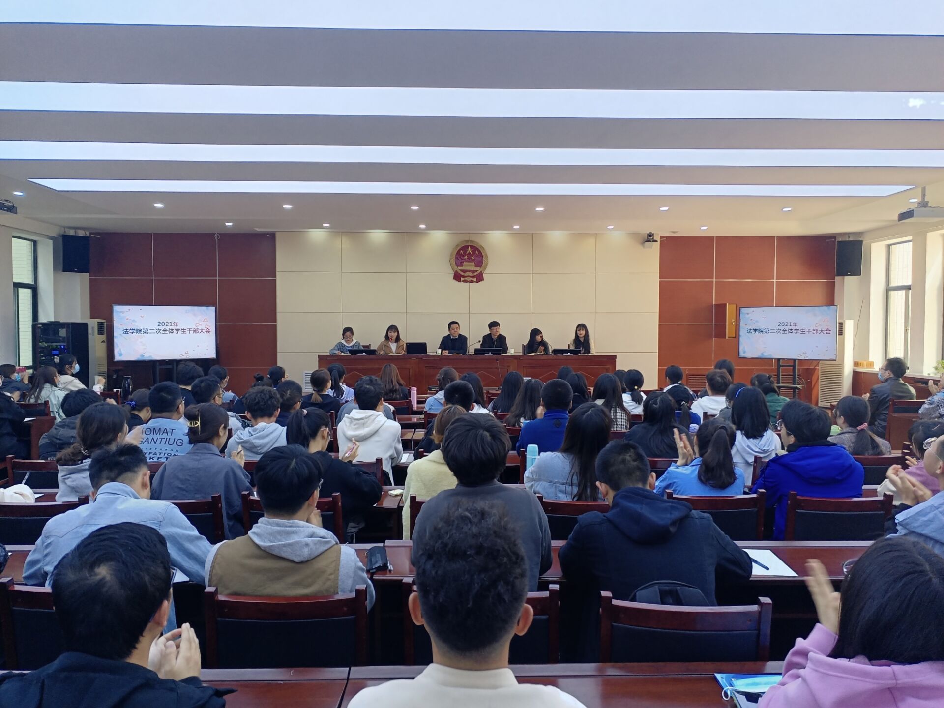 为进一步提升公司员工工作管理水平,增强员工干部工作能力和奉献意识,4月9日中午12时,金年会金字招牌诚信至上在模拟法庭召开了全体员工干部大会。党委副书记王金元老师、团委书记张永祯老师及全体专兼职辅导员参加了会议。会议由宋香云老师主持。