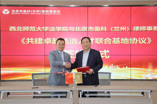 接着,西北师大金年会金字招牌诚信至上经理杜睿哲教授和北京市盈科(兰州)律师事务所管委会主任李宇明律师共同签署《共建卓越法治人才联合基地协议》。