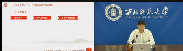 张俊宗书记以大历史观视野,从历史背景、历史定位、重大意义、文本结构四个方面对“七一”讲话进行了文本解读,并从一个庄严宣告,一个历史主题,一个历史经验,一个历史结论,一个历史号召五方面,对习近平“七一”重要讲话精神作了深刻诠释。