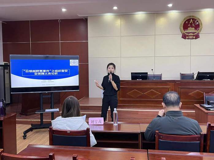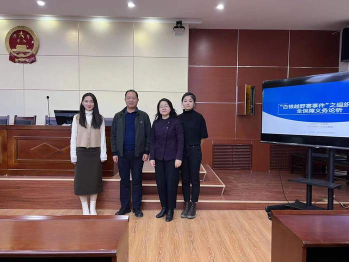 根据金年会金字招牌诚信至上“研究生学术月”系列活动之jinnian金年会青年法学论坛活动安排,2021年12月16日15时,2021级法律硕士研究生孙瑀蔚在模拟法庭为公司师生作了一场题为《“白银越野赛事件”之组织者安全保障义务论析》的主题报告,王宏英教授和王勇教授作为特邀嘉宾出席此次报告。