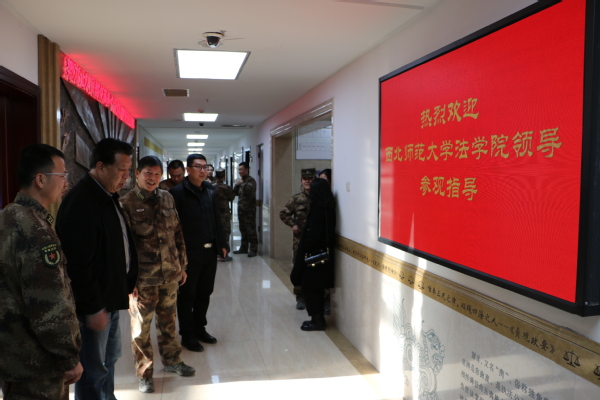为全面了解和掌握法学员工的实习管理工作,进一步加强实习工作过程的管理和监控,确保实习取得良好效果,12月24日,副经理党崇武、系主任何俊毅、教务老师刘萌一行3人赴兰州军事法院检查2018级法学员工实习情况。