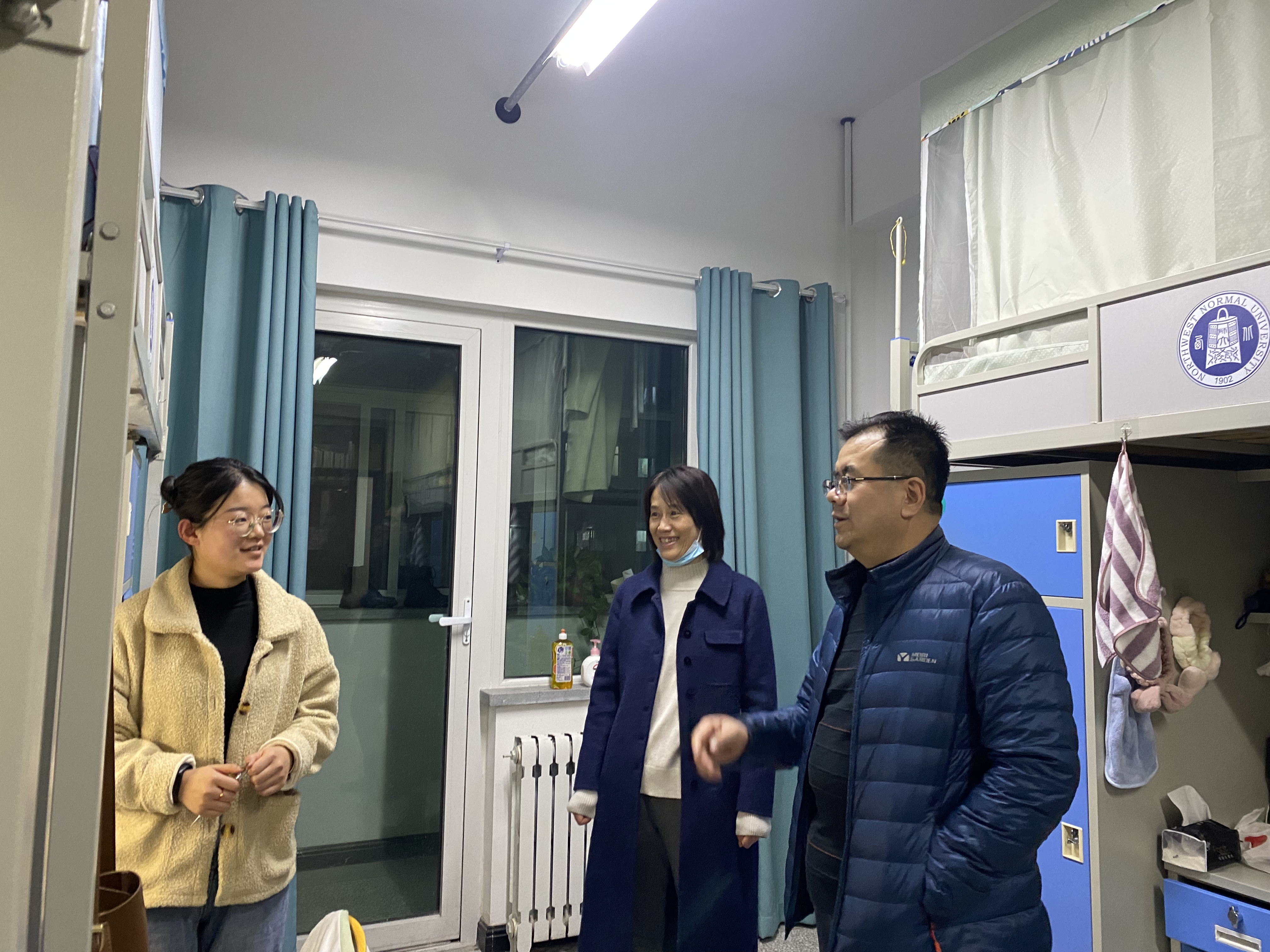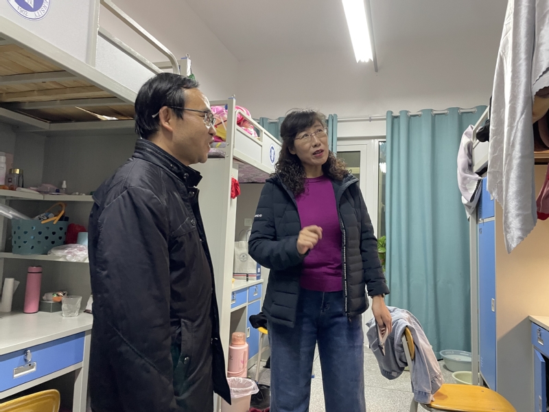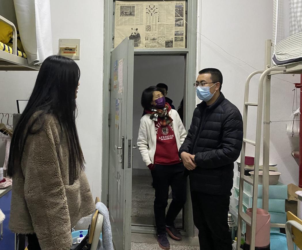 走访过程中,本科生班主任张国文老师与大四毕业生深入交流,从考研复试到求职准备,从个人规划到个人安全;研究生导师齐建辉老师详细询问每一间宿舍员工返校到位情况、同学们的假期生活以及新学期课程学习的安排情况,并叮嘱同学们返校后要及时调整状态,注意宿舍用电安全等相关事宜。