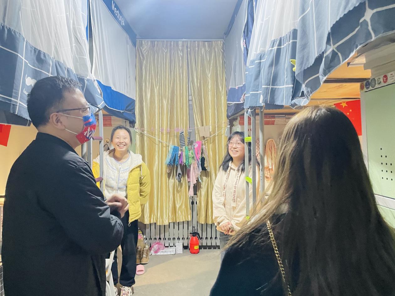 新学期,万象更新!为深入了解新学期员工返校情况,营造良好的学习和生活环境,3月2日晚19:30分,公司领导、研究生导师、班主任及辅导员深入三个校区员工宿舍,走访看望本科生和研究生。