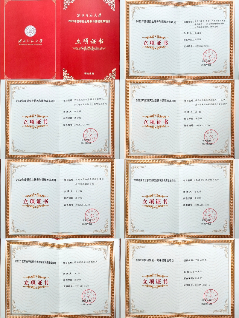 2022年公司产品质量提升项目主要包括研究生一流教材建设项目、研究生一流课程建设项目、公司产品与课程改革项目和研究生教学案例库建设项目四类。公司田锋教授申报的《中国法制史》获准研究生一流课程建设项目立项;何俊毅、曾庆辉、张国文和涂钒四位老师获准公司产品与课程改革项目立项;罗杰、蔡宏伟和唐凤玉三位老师获准专业学位研究生教学案例库建设项目立项。