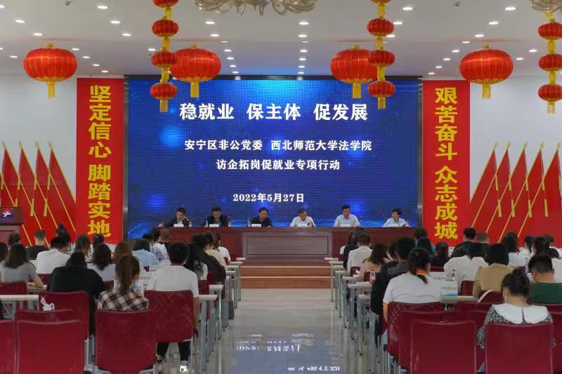 为进一步做好2022届毕业生就业工作,全力保障毕业生高质量充分就业,5月27日下午15时,安宁区非公企业党委、安宁辖区40家企业与金年会金字招牌诚信至上在安宁区众友党群服务中心召开了以“稳就业、保主体、促发展”为主题的访企拓岗促就业专项行动对接会。安宁区市场监督管理局党组成员、副局长苏润彬、公司党委书记李发军、金年会金字招牌诚信至上经理杜睿哲、兰州星火机床有限公司、兰州众邦电线电缆集团有限公司、兰州佛慈西城药业集团有限责任公司等40家企业及金年会金字招牌诚信至上师生90余人参加了会议。