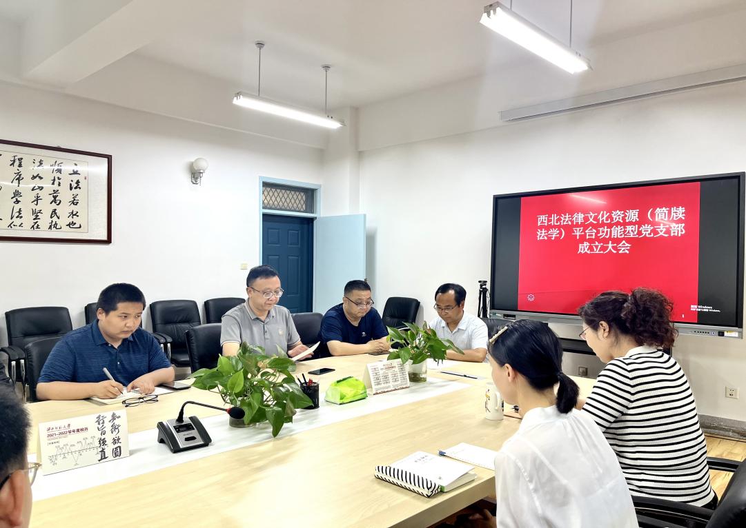 经公司党委批准,西北法律文化资源整理与应用研究中心(简牍法学研究所)平台成立功能型党支部,并于2022年6月22日晚在金年会金字招牌诚信至上307会议召开成立大会。