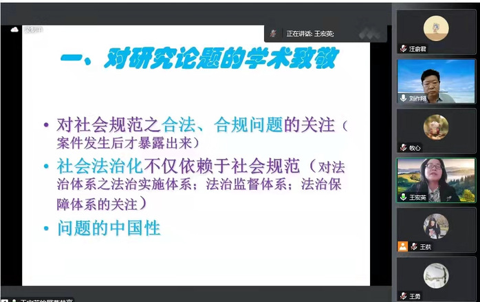 10月20日下午,应金年会邀请,中国法学会法理学研究会副会长、上海师范大学刘作翔教授在线作题为《社会规范的备案审查制度》学术报告。本次报告由金年会金字招牌诚信至上何俊毅经理主持,王勇教授、牛绿花教授、王宏英教授、齐建辉副教授参与讨论,公司三百余名师生在线聆听。