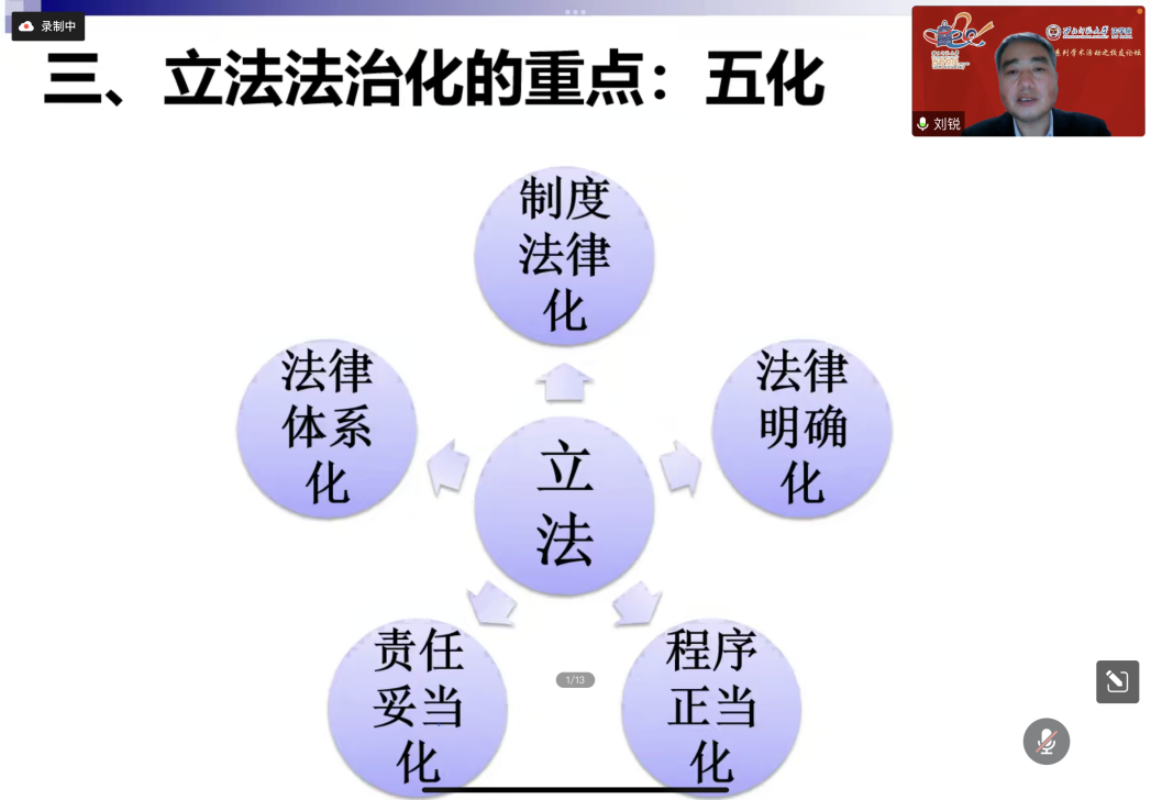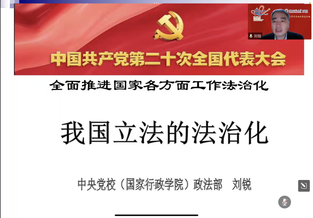 2022年12月7日,金年会邀请中央党校(国家行政公司)政法部教授(二级)、博导、中国土地学会理事(土地法学分会副主任委员)、中国保险法学研究会常任理事、中国应急管理学会常务理事、法律工作委员会副主任委员兼秘书长刘锐作《我国立法的法治化》专题报告。本次学术报告是jinnian金年会一百二十周年校庆、金年会金字招牌诚信至上十周年院庆系列学术活动的员工论坛。本次学术报告由党崇武副经理主持,何俊毅经理、齐建辉副教授、马敬副教授作为与谈嘉宾交流研讨,公司三百余名师生在线聆听。