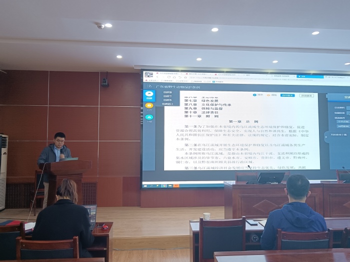 接下来武老师介绍了智能立法平台的使用方法。智能立法平台包括智能检索、立法资料、在线起草等功能。武老师以《广东省野生动物保护条例》和《甘肃省电网建设与保护条例》为例向同学们介绍了在线起草功能与版本比对功能的相关操作及注意事项。之后,武崇松老师对同学提出的关于智慧立法平台的分析功能等疑问进行了回答,整场培训圆满结束。