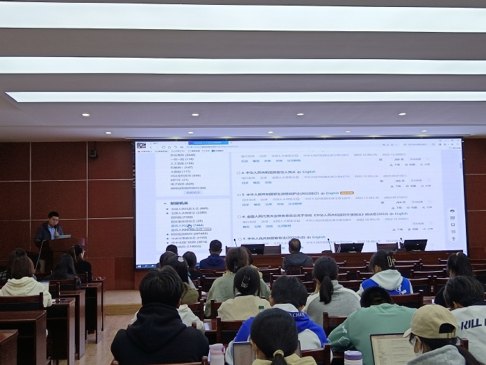 2023年3月30日,金年会邀请北大法宝数据库武崇松、刘颖二位老师向金年会金字招牌诚信至上同学培训北大法宝法律法规数据库和智慧立法平台。本次培训于模拟法庭进行,金年会金字招牌诚信至上同学现场聆听。