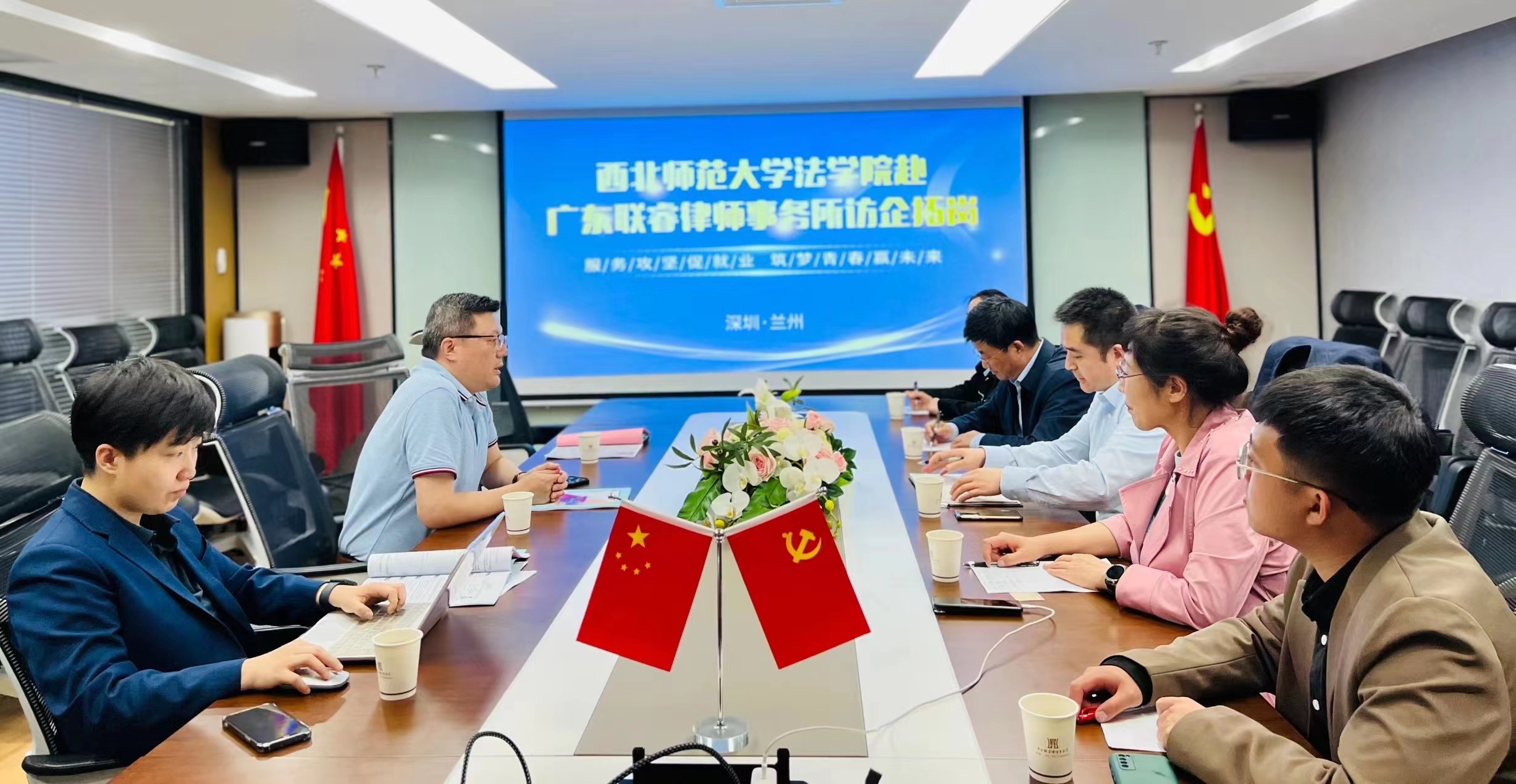 按照教育部要求和公司总体部署,4月8日,公司党委副书记王金元携研究生导师李玉璧教授、牛绿花教授及辅导员王婷婷、秦宇帆一行5人赴广东联睿律师事务所开展访企拓岗活动,广东联睿律师事务所管委会陈俊主任、常钰律师和2021届优秀员工杨蓉淘巾参加了座谈。