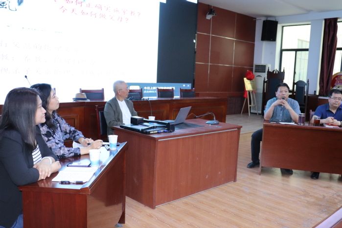 首先,肖老师介绍了重视家庭、家教、家风的时代背景。中央媒体对传承发扬中华优良传统文化的宣传受到民间百姓的广泛认同和欢迎,正面家庭的模范作用、著名家训等都产生了广泛积极影响。家是天下之本,中国人是在这种家国同构的社会里生活的,重视血缘亲情和家庭是我们国家的传统和价值观。家也是我们生活的共同体,重视家庭有利于促进社会更好地发展。其次,肖老师介绍了家训、家教及其德育功能。家教是通过家训进行承载的,家训是家风的文本规范体现。家训家教的基本功能是伦理教化功能,其在家庭、宗族中有效倡行了敦亲睦邻、立身修德、谦恭处事等伦理道德准则。家训与家教培育促进了良好家风的形成。德育是家庭的重要功能,良好的家风是吉祥幸福的保障。家风是社会风气的重要组成部分。最后,肖老师介绍了如何正确实施家教。主要有履行父慈的伦理义务;家教、养教、德智相结合;重视亲子伦理关系三个方面。