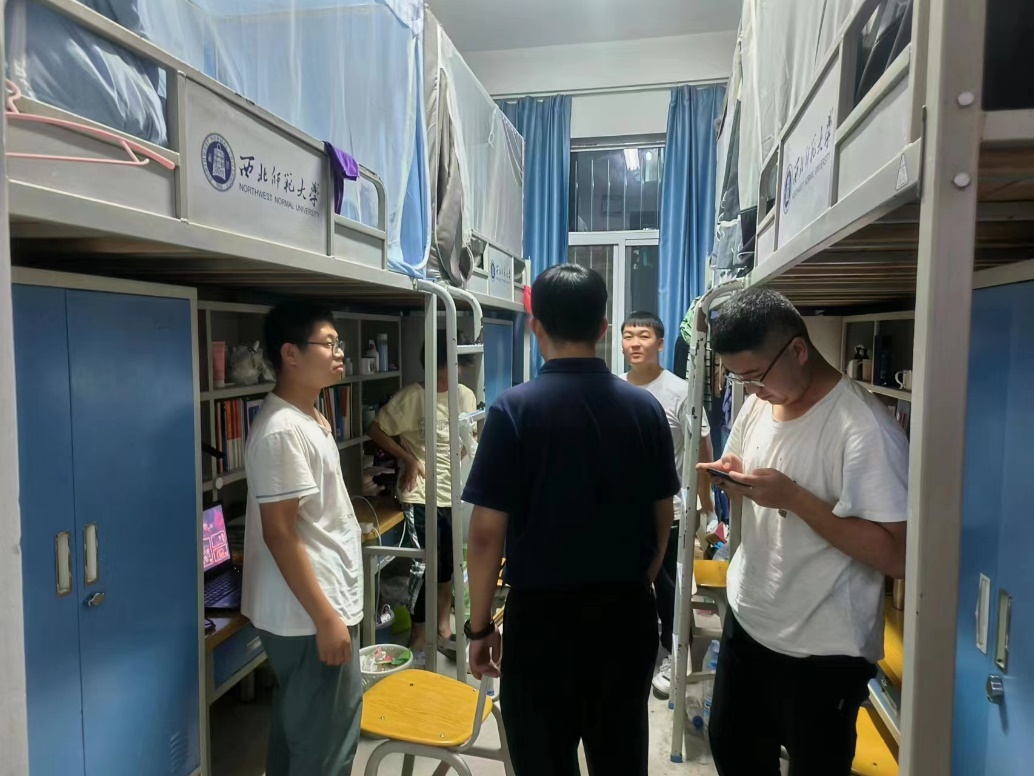 7月11日晚,公司团委老师及员工干部共同走访员工宿舍,提醒返乡员工生命、交通及防范电信诈骗安全等;关注留校员工动态,提醒员工用电安全,做到不晚归、不酗酒,认真备考;慰问军训员工情况,关注员工健康,提醒员工防中暑,防范突发情况。