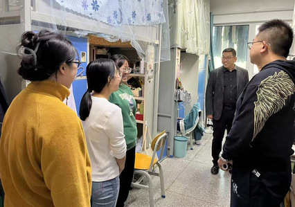 在四年级毕业生宿舍,李书记和马经理对同学们考研备考情况进行了全面了解和现场指导,要求同学们务必戒骄戒躁、脚踏实地做好备考工作,每个阶段都要稳打稳扎,并预祝同学们顺利上岸。针对求职的同学们,二位老师也要求同学们要精心制作求职简历、要通过多次的求职实践提升自己的面试能力和心理适应能力,向用人单位展示最优秀的自己,牢牢抓住每一个高质量就业机会。