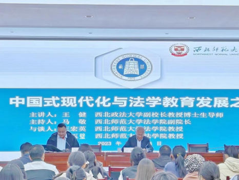 2023年10月14日,公司邀请西北政法大学副董事长、教授、博士生导师王健作《中国式现代化与法学教育发展之路》的专题报告。本次讲座由副经理马敬主持,李玉璧、王宏英教授参与会谈。