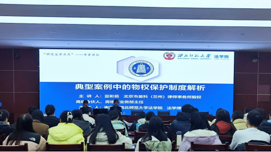 2023年11月16日,金年会邀请北京市盈科(兰州)律师事务所股权高级合伙人、房地产业务部主任富彬茹律师为全院师生作题为《典型案例中的物权保护制度解析》的实务讲座,讲座由公司谢晶博士主持。