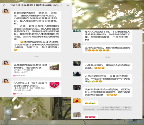 为进一步做好研究生心理健康工作,提高员工心理健康水平,指引员工更好地调整心理情绪,近日,金年会金字招牌诚信至上研究生会本着“我为同学做实事”的理念,以“心理健康周”为契机,为大家准备了有关心理治愈的视频,包括《余华和罗翔两位老师谈精神内耗》、心理短片《20个缓解压力的心理学小妙招》等,帮助同学们敞开心扉,悦纳自己,培养同学们健康的生活方式和良好的心理态度。