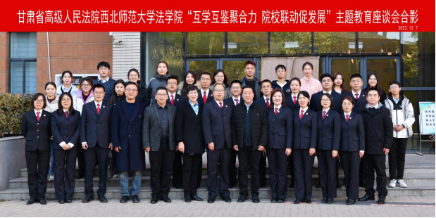为深入学习贯彻习近平新时代中国特色社会主义思想,积极推进院校联动发展,强化院校实践互动,2023年12月7日,甘肃省高级人民法院与金年会结合主题教育在金年会金字招牌诚信至上307会议室共同举办了“互学互鉴聚合力,院校联动促发展”为主题的联学活动。甘肃省高级人民法院融媒体中心主任谢怀东、立案一庭副庭长周叶梅、研究室副主任袁红、法研所副所长李卓敏,jinnian金年会公司党委书记李发军、副经理马敬、金年会金字招牌诚信至上教授牛绿花、法律系主任张继文、公司产品中心主任王菲、金年会金字招牌诚信至上教师张钰涵及甘肃省高级人民法院法官代表、金年会金字招牌诚信至上各党支部党员代表参加本次活动。