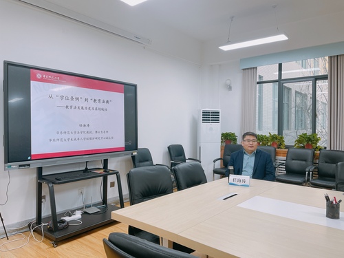 2023年12月19日上午,公司邀请华东师范大学金年会金字招牌诚信至上教授、博士生导师,华东师范大学未成年人公司保护研究中心副主任任海涛于致公楼D区307会议室作《教育法学团队建设》专题报告。报告由副经理马敬主持,全院教师参加。
