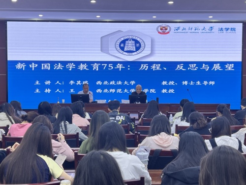 024年5月31日,西北政法大学李其瑞教授为全院师生作了题为《新中国法学教育75年:历程、反思与展望》的专题讲座。讲座在云亭校区致公楼E区模拟法庭举行,王勇教授主持。