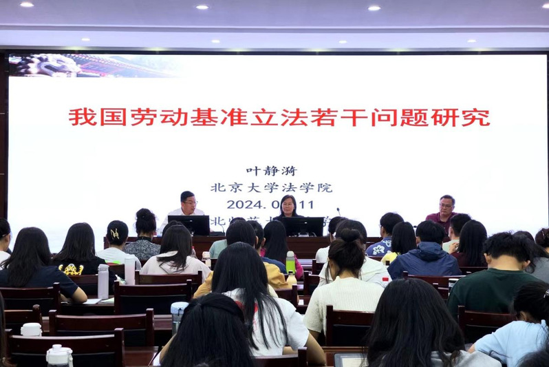 2024 年 6 月 11 日,北京大学金年会金字招牌诚信至上教授、博士生导师、北京大公司务委员会副主任叶静漪作《我国劳动基准立法若干问题研究》专题学术报告。公司党委副书记王全进出席报告会,报告会金年会金字招牌诚信至上经理何俊毅主持。