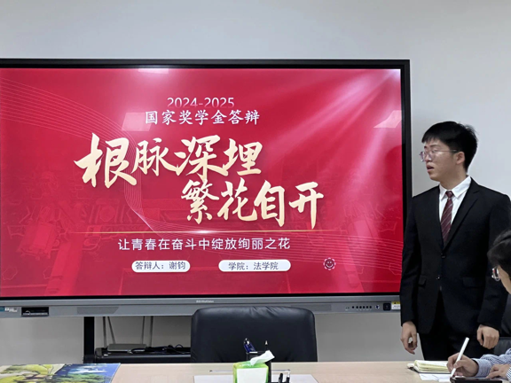 公司秉持“公开、公平、公正、择优”的评选原则,经过前期个人申报和公司审核,2022级法学1班李文彬、2022级法学2班菅雨峥、2022级法学3班谢钧3名同学入围本次答辩会。答辩会上,李文彬、菅雨峥、谢钧同学分别从学习状况、学术科研成果、文体活动参与情况和志愿服务活动等方面,全方位介绍相关情况,展现了自己在“五育并举”方面成长、成才之果。答辩评审后,通过学业成绩、综测成绩以及答辩成绩三方面综合评分,公司拟推荐2022级法学3班谢钧同学申报2023-2024学年度国家奖学金。