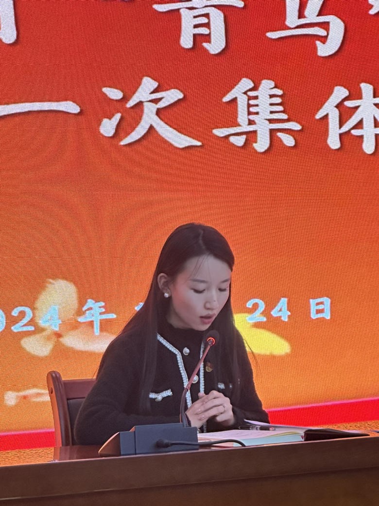 团委书记白洁老师宣读青马班培训方案并希望青马学子们积极承担时代使命,深入学习革命文化,发扬红色精神,立志做马克思主义的坚定拥护者和切实实践者,以奋斗诠释责任担当,用奉献书写不凡篇章。