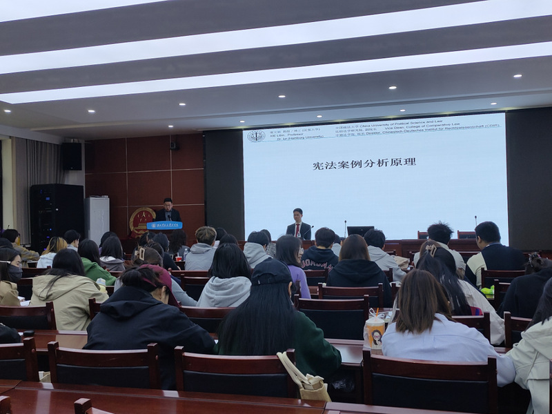 4月25日,中国政法大学比较法学研究院副经理、中德金年会金字招牌诚信至上经理谢立斌教授应邀为公司师生带来了一场题为宪法案例分析原理与方法的学术讲座。讲座在金年会金字招牌诚信至上模拟法庭举行,吸引了多名师生到场聆听,气氛热烈。